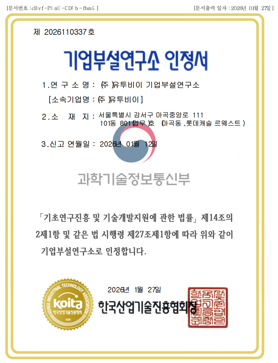 기업부설 연구소 인정서